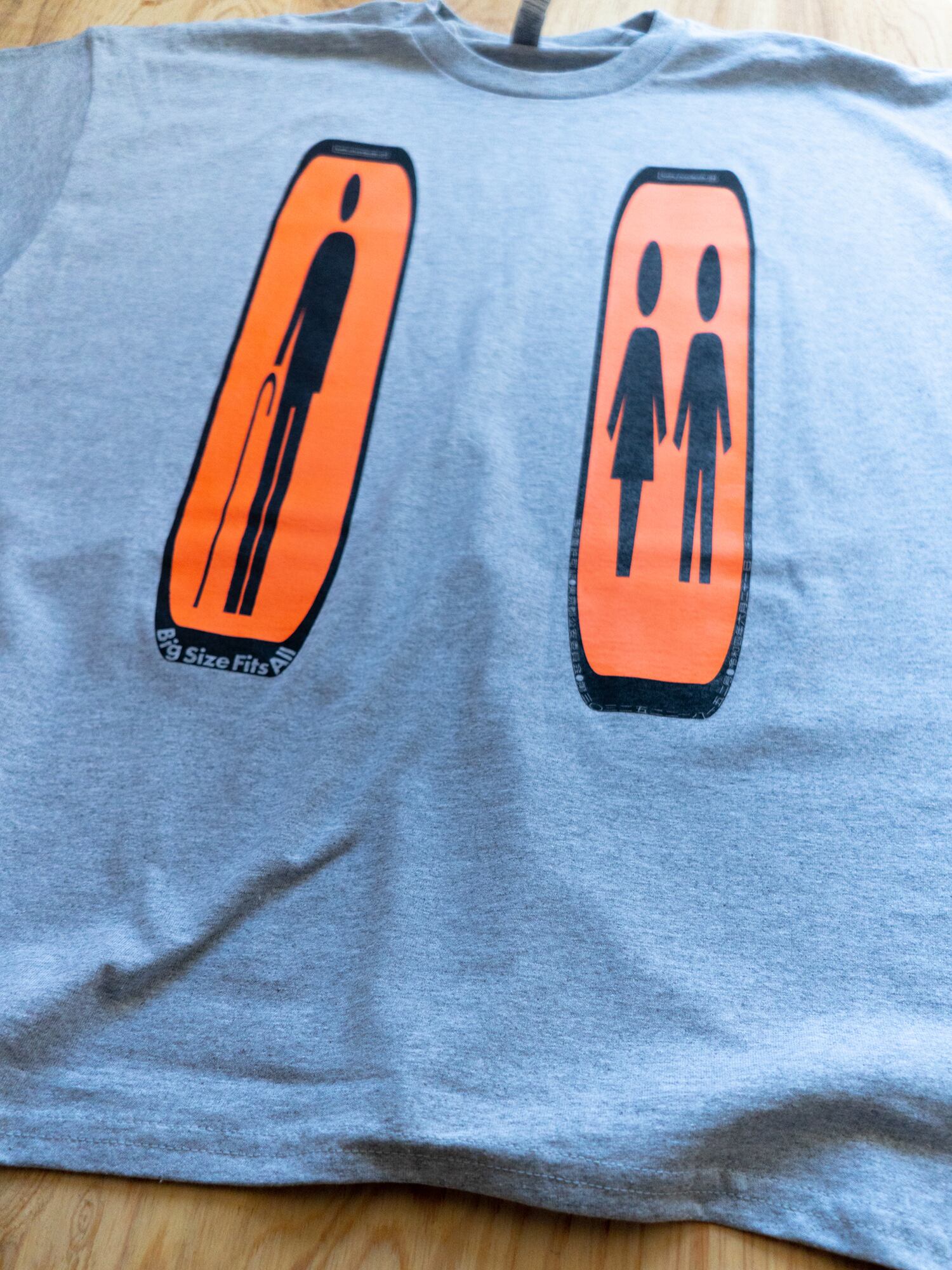 大きい老若男女のピクトグラムのTシャツです。(前–老若、背—男女)